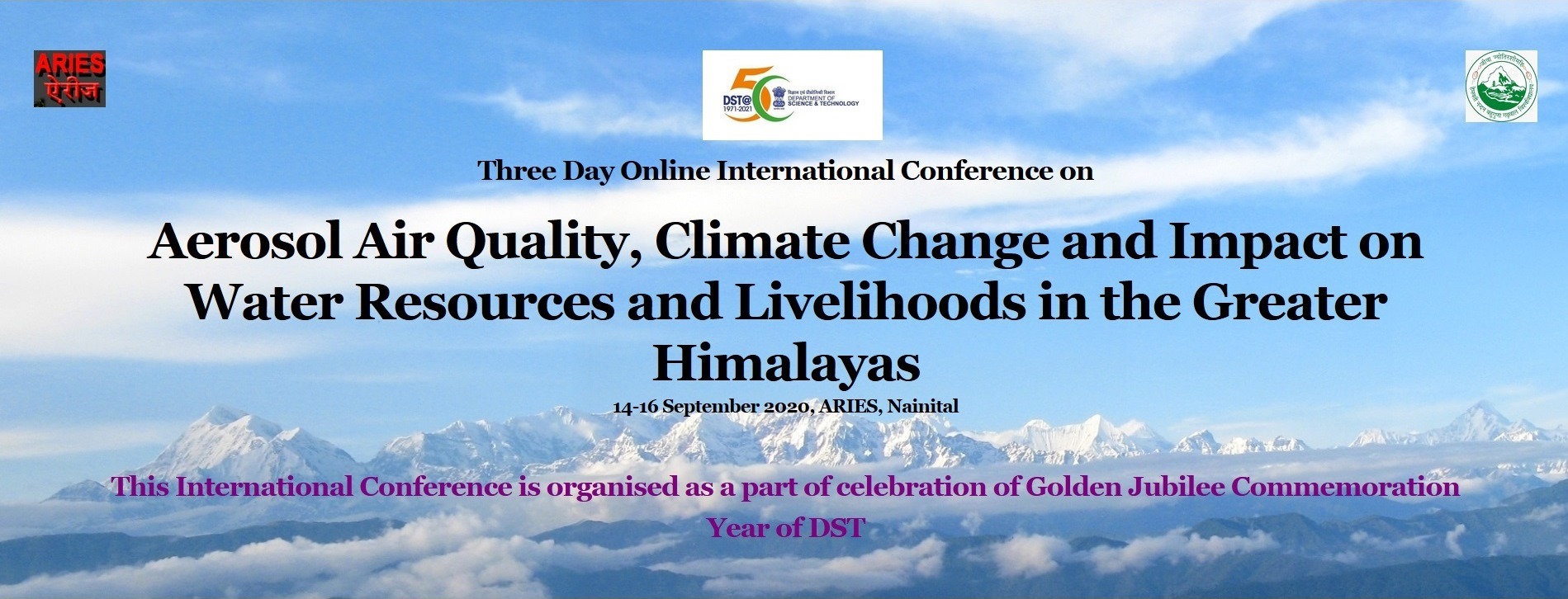 In view of the above, the ARIES, Nainital and Hemvati Nandan Bahuguna Garhwal Central University (HNBGU) Srinagar, Pauri Garhwal, plan to jointly organize a three day online International Conference on “Aerosol Air Quality, Climate Change and Impact on Water Resources and Livelihoods in the Greater Himalayas” on 14 - 16 September 2020.