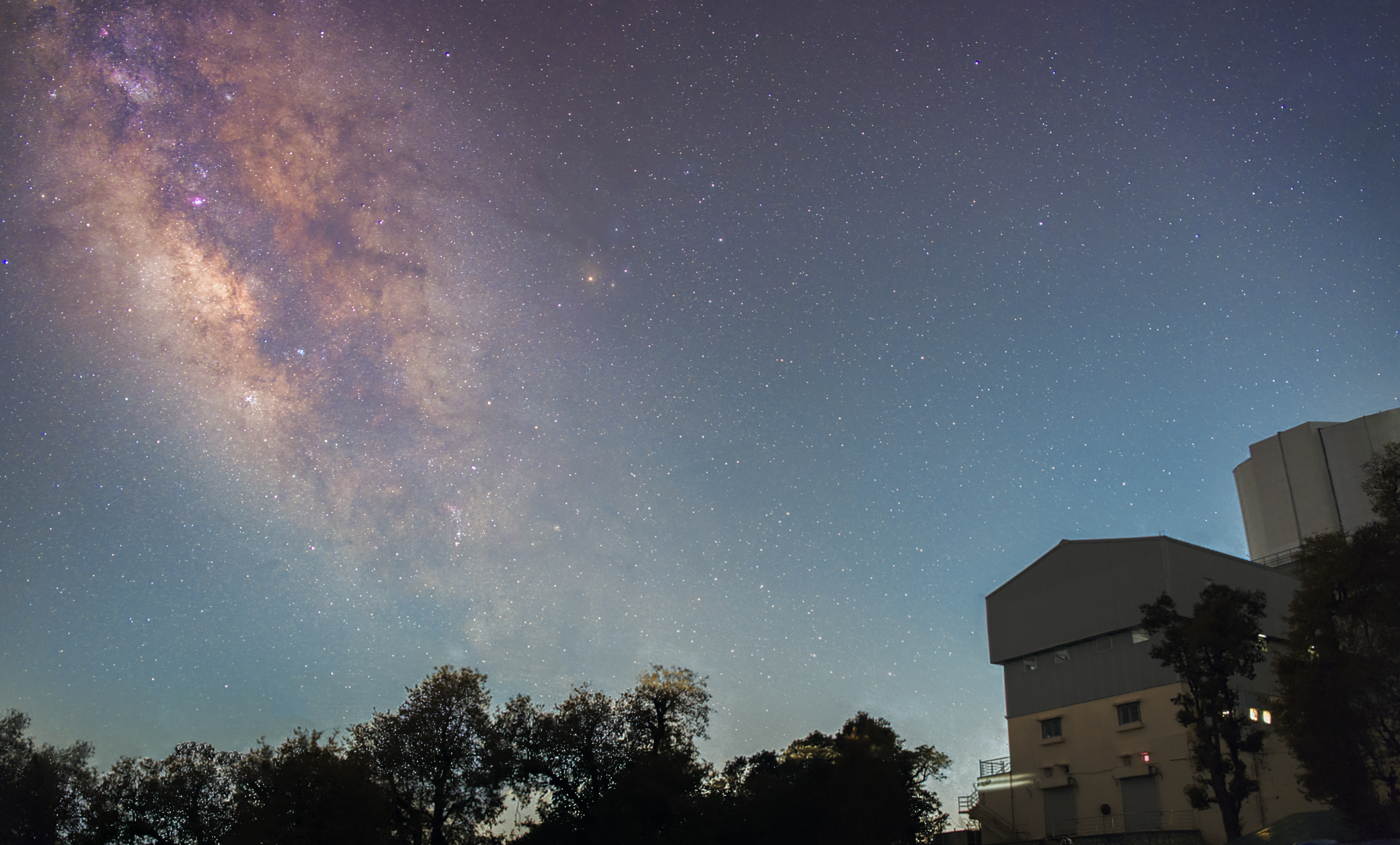 The DOT building illuminated under the cosmic glow of the Milky Way. (Credit: Sarath Prabhav).