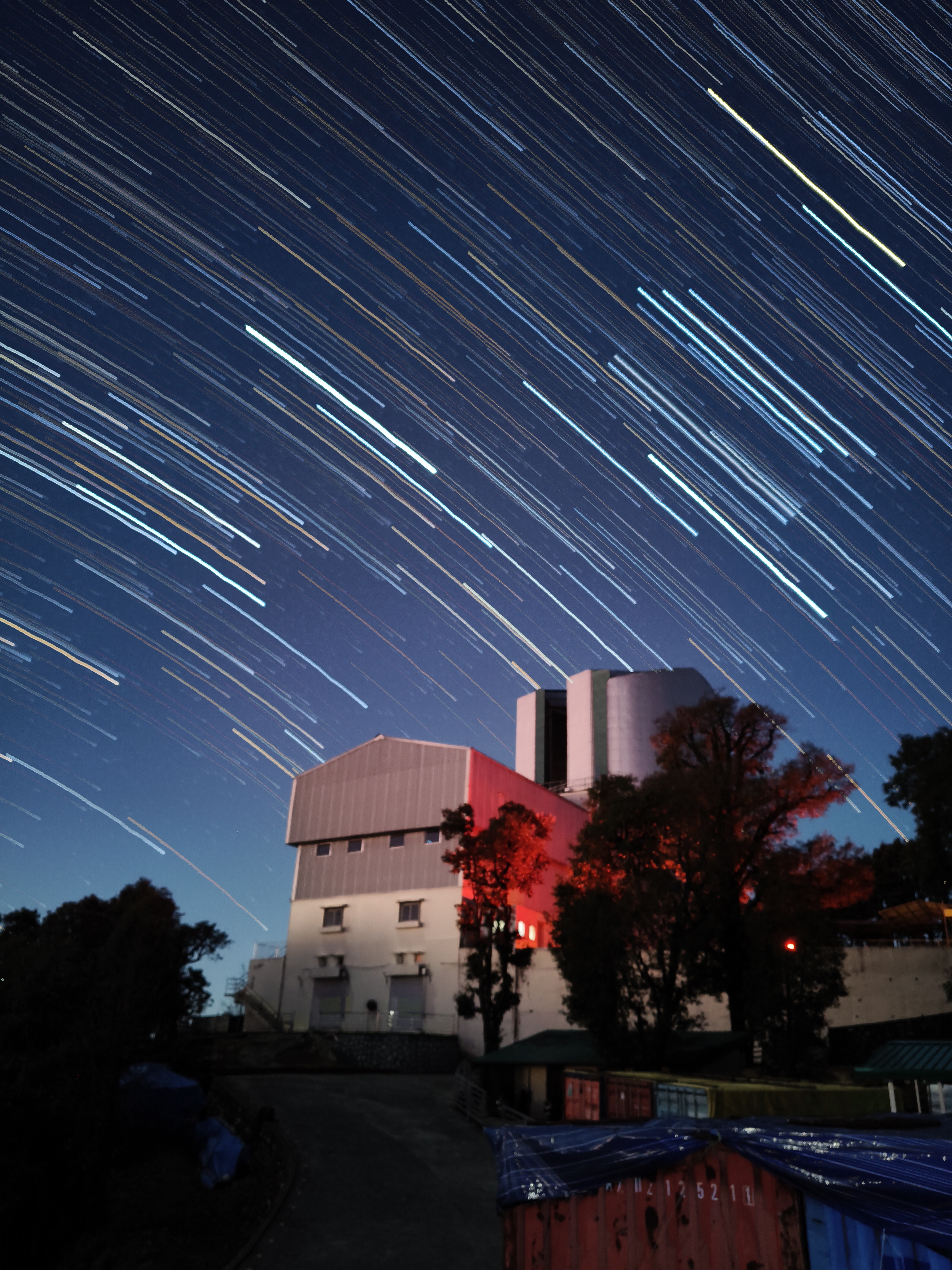 The star trails against the backdrop of the DOT building (Credit: Kartik Gokhe).
