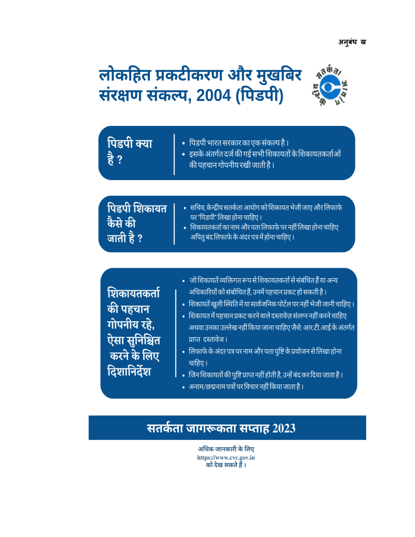 - लोकिहत प्रकटीकरण और मुखिबर संरक्षण (पिडपी),